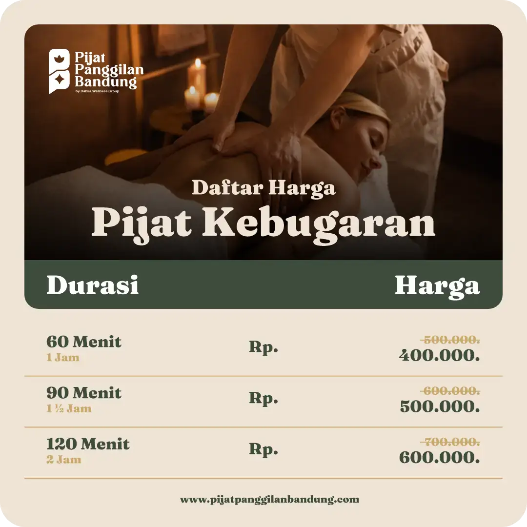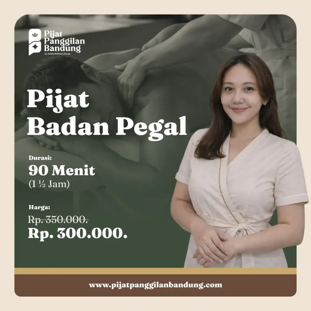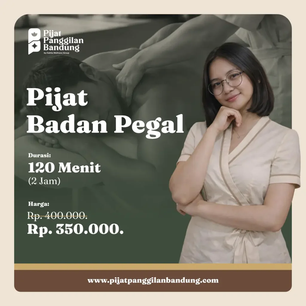 Kami adalah pijatpanggilanbandung.com salah satu layanan jasa pijat panggilan favorit di Kota Bandung. #PijatPanggilanBandung dikelola oleh Dahlia Wellness Group. memenuhi kebutuhan pijat sehari-hari setelah beraktivitas, dengan sistem layanan yang praktis dan langsung datang ke lokasi Anda di area Bandung dan sekitarnya.