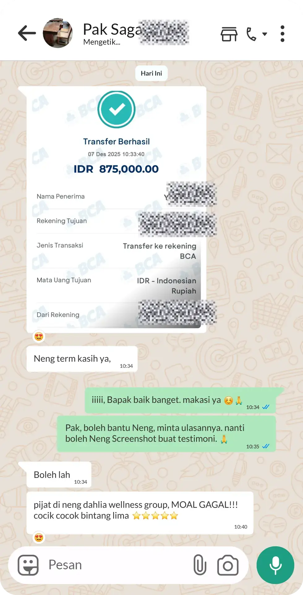 Perlakuan dan pijatan menyesuaikan kondisi tubuh, tanpa pendekatan yang kaku pada satu jenis layanan.